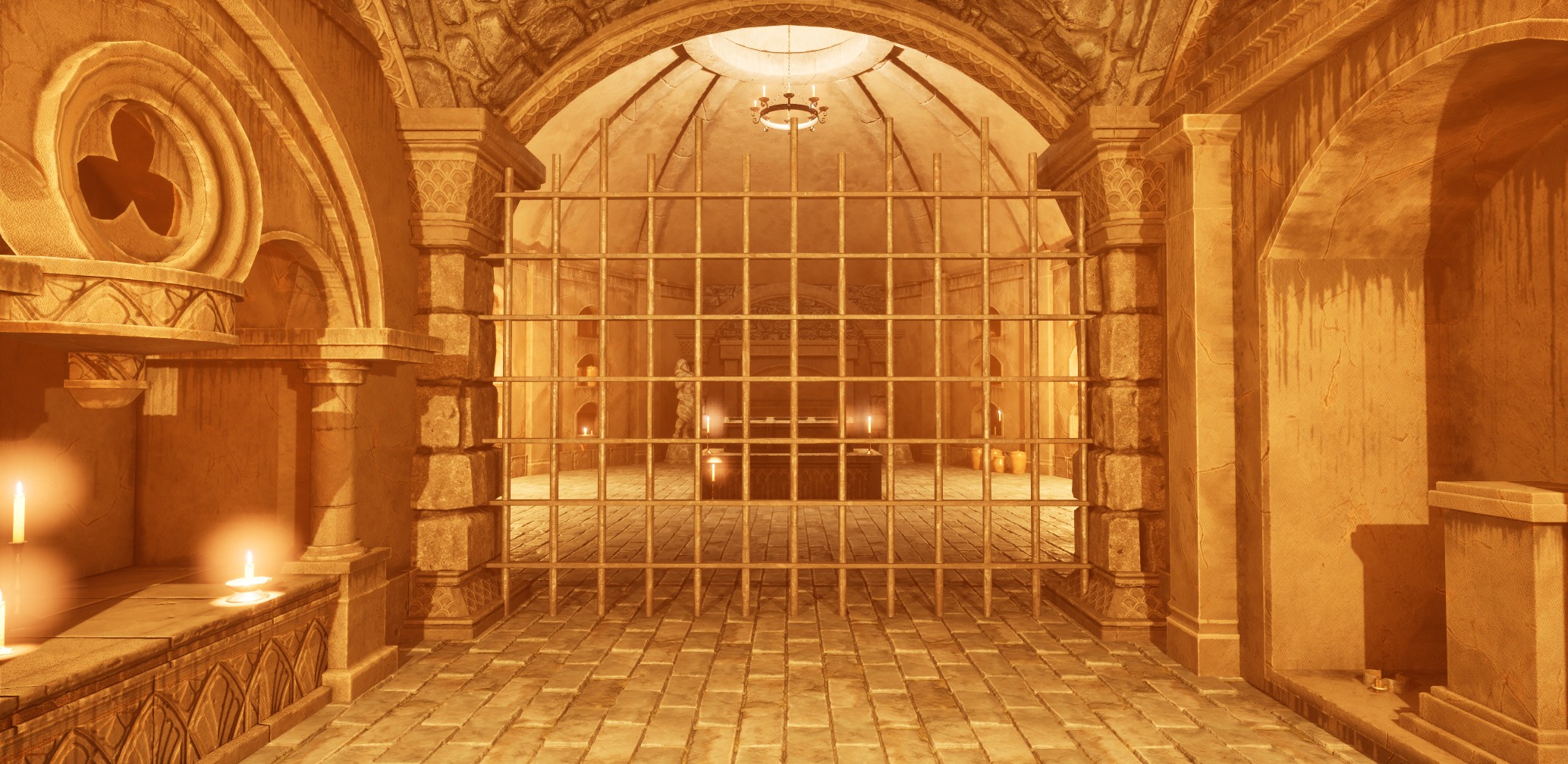 The player explores a crypt environment and progresses by solving spatial and logic-based puzzles.